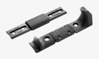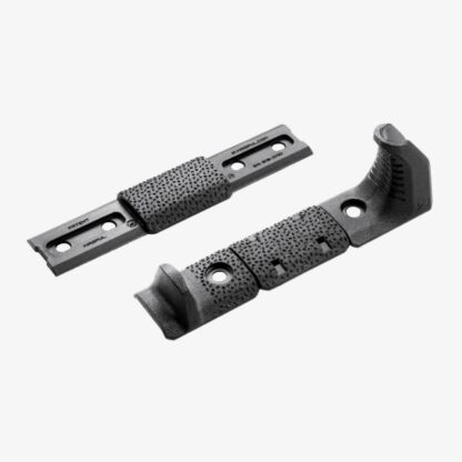 The kit includes one M-LOK Hand Stop, one M-LOK Index Panel, and one M-LOK Rail Cover Type 2 for the individual user to configure their kit as they desire. Also included in this kit is an adapter for use with Magpul M-LOK equipped polymer Hand Guards / Forends as well as other wider profile aluminum hand guards.